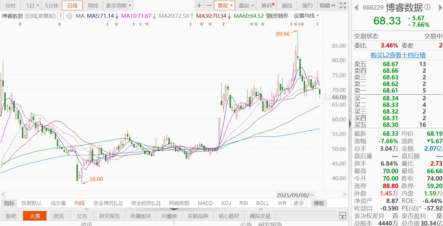 A股异动︱博睿数据跌逾7%,股东拟减持不超过5.4%公司股份