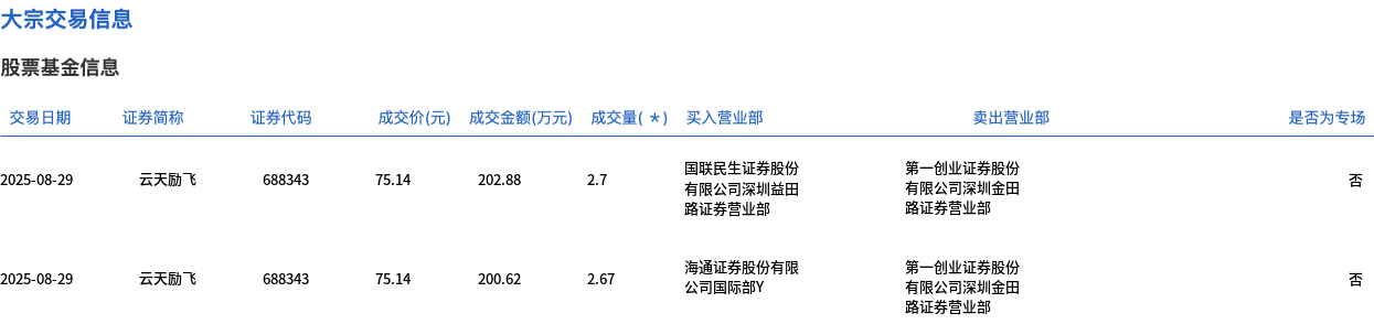 云天励飞现2笔大宗交易 总成交金额403.50万元