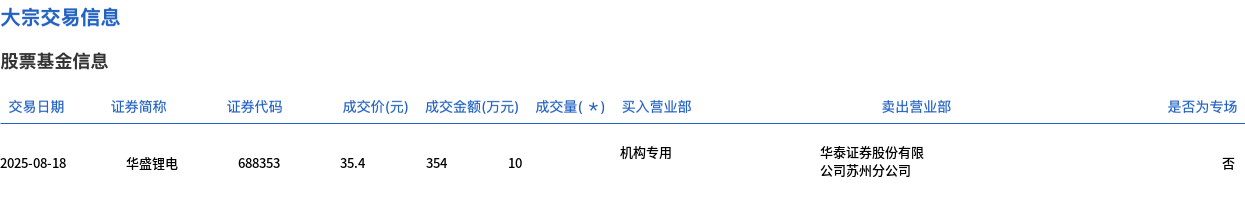 华盛锂电今日大宗交易折价成交10万股,成交额354万元