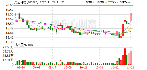 光云科技股价涨5.56%,申万菱信基金旗下1只基金重仓,持有48.19万股浮盈赚取44.34万元