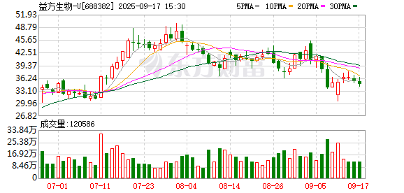 益方生物股价连续5天下跌累计跌幅6.99%,国投瑞银基金旗下1只基金持8.57万股,浮亏损失21.85万元