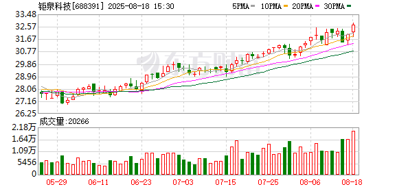 股价表现 - 截至2025年8月1日收盘,钜泉科技股价报30.57元,较前一交易日上涨0.36% [1] - 当日成交量为10157手,成交金额3100万元,换手率为1.77% [1] - 当日振幅2.07%,最高触及30.93元,最低探至30.30元 [1] 资金流向 - 8月1日主力资金净流出5.54万元,近五个交易日累计净流出1932.44万元 [1] 估值指标 - 当前公司总市值35.20亿元,动态市盈率为98.46倍,市净率1.86倍 [1] 公司概况 - 钜泉科技是一家专注于半导体领域的高科技企业,主营业务包括芯片设计及相关技术服务 [1] - 公司产品主要应用于工业控制、消费电子等领域 [1] - 作为上海本地企业,钜泉科技入选了专精特新企业名单,在国产芯片领域具有一定技术积累 [1]