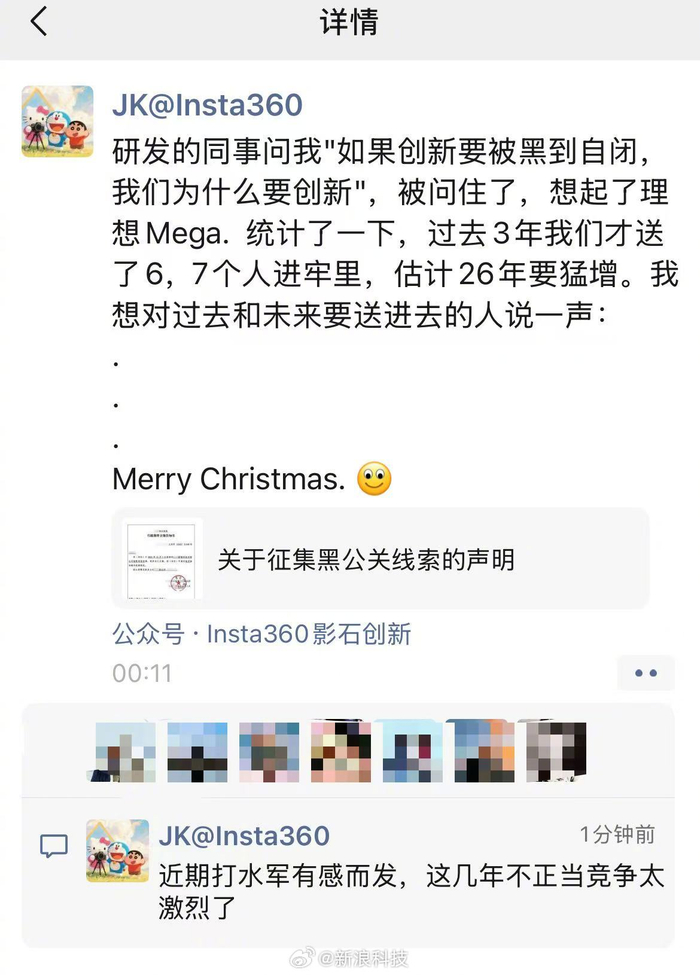 公司声明与行动 - 影石创新官方发布《关于征集黑公关线索的声明》,旨在征集针对其品牌的恶意造谣、组织诋毁等违法违规行为线索 [1][5] - 公司为征集线索提供现金奖励,线索/证据经采纳每条奖励1千到1万元不等,若被公安机关采纳每条奖励1万到10万元不等 [2] - 公司已就针对其新品“影翎Antigravity”无人机的恶意不实信息向公安机关报案,公安机关已正式立案并查实包括某自媒体账号在内的主体存在发布虚假信息的行为 [1] 事件背景与影响 - 影石创新CEO刘靖康在朋友圈表示,研发同事提出“如果创新要被黑到自闭,我们为什么要创新”的问题,并提及此事让其想起了理想Mega事件 [1][4] - 自“影翎”无人机新品上市两周内,网络上集中涌现超过2500条虚假恶意内容,相关证据现已得到固定 [2] - 公司CEO透露,过去3年公司才将6、7个人送进牢里,并估计2026年因此类事件被送进牢里的人数要猛增 [1][4] 行业竞争环境 - 影石创新CEO评论表示,近期打击网络水军的经历让其有感而发,认为这几年不正当竞争太激烈了 [1][8] - CEO的言论将公司遭遇与理想汽车Mega事件相联系,暗示行业内存类似的黑公关竞争手段 [1]