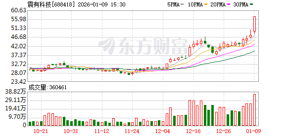 公司股价表现 - 1月9日盘中,震有科技股价涨停,报57.29元,成交额达10.65亿元,换手率10.46%,振幅19.08% [2] - 当日,震有科技在科创板涨幅居前,上涨20.00% [2] - 公司上一交易日主力资金净流入1.37亿元,近5日主力资金净流入3.34亿元 [3] 市场交易与资金数据 - 截至1月8日,公司两融余额为6.99亿元,其中融资余额为6.99亿元 [3] - 公司融资余额较前一交易日增加2253.91万元,增幅为3.33% [3] - 近10日公司两融余额合计增加1.34亿元,增幅达23.77%,其间融资余额增长23.77% [3] 行业与市场整体情况 - 截至发稿,科创板上涨个股共有433只,其中涨幅在10%以上的有10只 [2] - 除震有科技外,信科移动-U、华秦科技涨幅较高,分别上涨20.00%和16.97% [2] - 科创板下跌个股有162只,芯源微、必贝特-U、恒坤新材跌幅较大,分别下跌8.81%、5.90%、4.41% [2] 机构观点 - 近一个月,公司获得1家机构买入评级 [3] - 1月7日,浙商证券发布研报给予公司买入评级 [3]