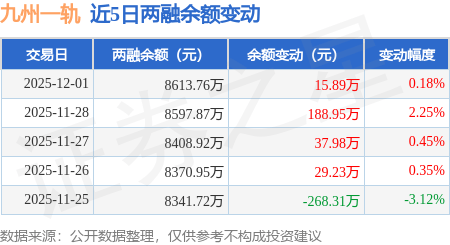 九州一轨:12月1日融资净买入15.89万元,连续3日累计净买入242.81万元