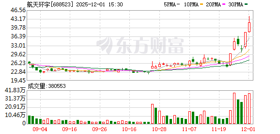 商业航天板块市场表现 - 12月1日商业航天板块整体呈现高开高走态势[1] - 航宇微股价涨停涨幅达到20.01%现价为18.23元[1][2] - 通宇通讯、航天发展、光启技术等近10只股票涨停[1] - 乾照光电涨幅超过13%达13.32%盘中股价创下21.61元的新高[1][2] 领涨个股详情 - 天润科技涨幅为19.19%现价28.82元[2] - 亚光科技上涨12.82%至8.45元[2] - 航天宏图涨幅12.31%股价为30.75元[2] - 雷科防务、利君股份、光启技术等多股涨幅均超过10%[2] 行业政策动向 - 国家航天局近期已设立商业航天司相关业务正逐步开展[2]