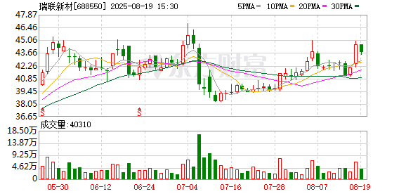 股价表现 - 截至2025年8月19日收盘,瑞联新材股价报43 73元,较前一交易日下跌1 95% [1] - 当日成交额达1 77亿元 [1] 公司业务 - 公司主营业务为电子化学品、医药中间体等精细化学品的研发、生产和销售 [1] - 产品主要应用于显示材料、医药等领域 [1] 公司动态 - 公司将于2025年8月27日举行半年度业绩说明会 [1] - 投资者可关注相关业绩说明会动态 [1]