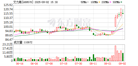 艾力斯现30笔大宗交易 总成交金额5.66亿元