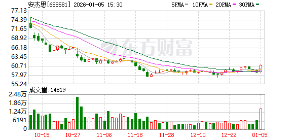 公司股价与交易表现 - 12月31日,安杰思股价下跌1.08%,报收58.59元/股 [1] - 当日成交额为2297.36万元,换手率为0.94% [1] - 公司总市值为47.53亿元 [1] 公司基本情况 - 杭州安杰思医学科技股份有限公司位于浙江省杭州市临平区 [1] - 公司成立于2010年12月6日,于2023年5月19日上市 [1] - 公司主营业务为内镜微创诊疗器械的研发、生产与销售 [1] 公司主营业务收入构成 - GI类产品是公司最主要的收入来源,占主营业务收入的62.74% [1] - EMR/ESD类产品收入占比为23.26% [1] - ERCP类产品收入占比为11.04% [1] - 仪器类产品收入占比为2.21% [1] - 其他收入占比为0.74% [1] 基金持仓情况 - 华泰保兴基金旗下有一只基金重仓安杰思,为华泰保兴健康消费A(006882) [2] - 该基金在三季度持有安杰思3640股,占基金净值比例为6.03%,为第六大重仓股 [2] - 根据测算,12月31日该持仓浮亏约2329.6元 [2] 相关基金表现 - 华泰保兴健康消费A(006882)最新规模为74.14万 [2] - 该基金今年以来亏损14.34%,同类排名8076/8085 [2] - 近一年亏损15.05%,同类排名8073/8085 [2] - 自成立以来亏损10.2% [2] - 该基金的基金经理为赵旭照 [2] - 赵旭照累计任职时间7年353天,现任基金资产总规模6.53亿元 [2] - 其任职期间最佳基金回报为45.34%,最差基金回报为-16.99% [2]