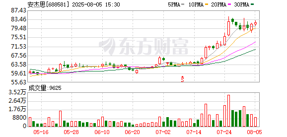 安杰思今日大宗交易折价成交10万股,成交额813万元