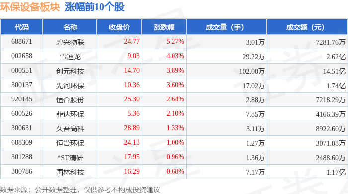环保设备板块12月31日涨0.4%,碧兴物联领涨,主力资金净流出1.35亿元
