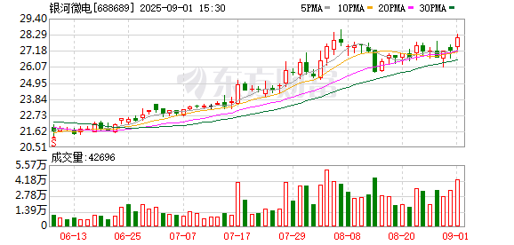 银河微电今日大宗交易折价成交34.79万股,成交额844.83万元