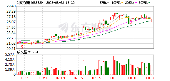 银河微电今日大宗交易折价成交8.5万股,成交额212.16万元