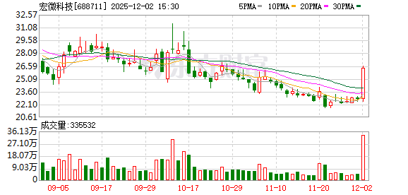 宏微科技涨15.85% 营业部龙虎榜净买入5359.69万元