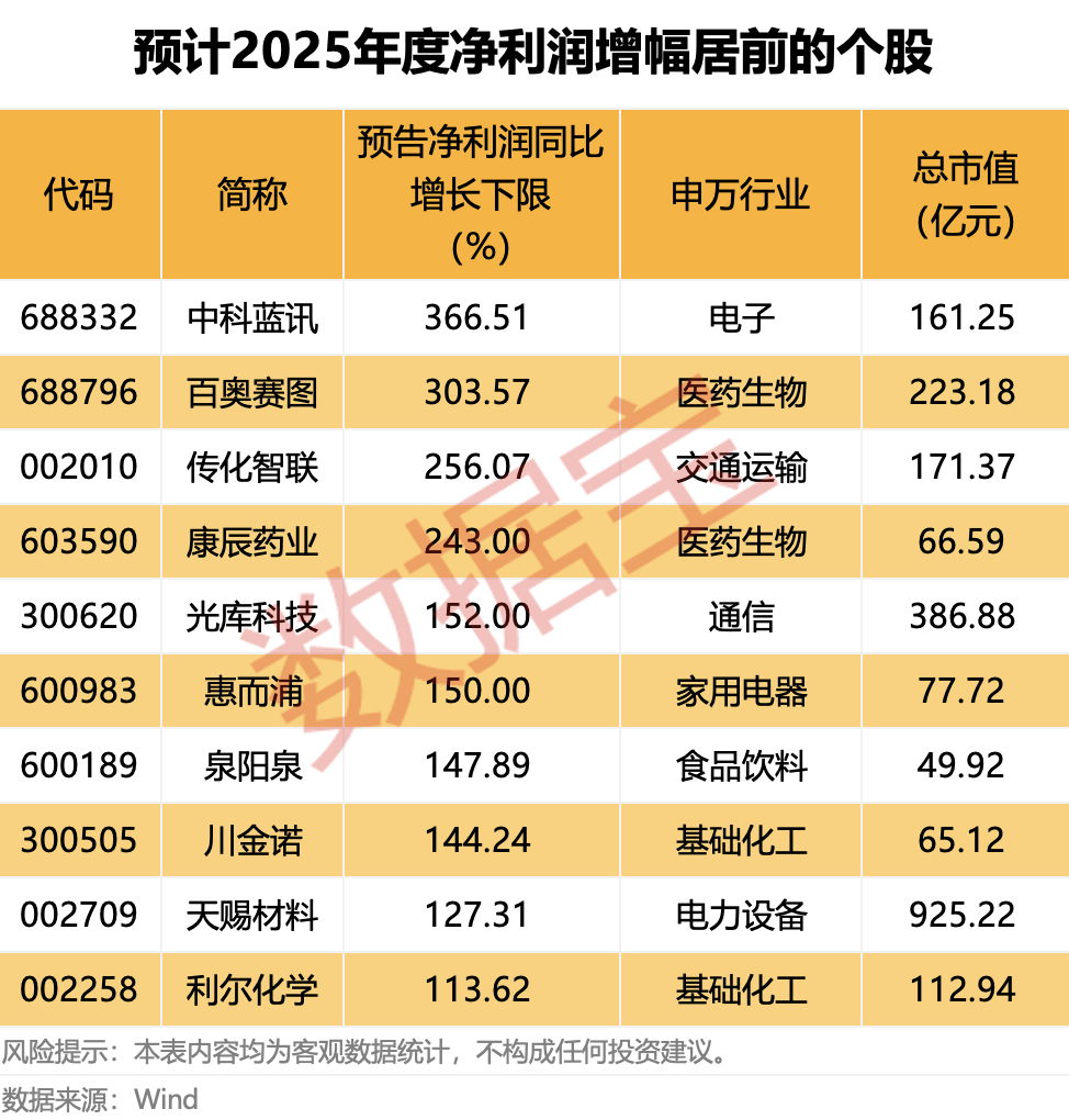 2025年业绩高增长股提前看,8股净利润增幅翻倍