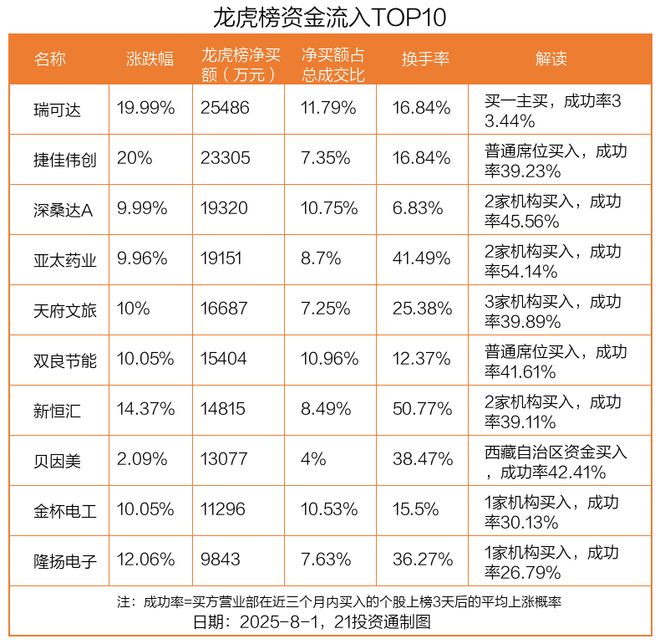 瑞可达龙虎榜数据(8月1日)