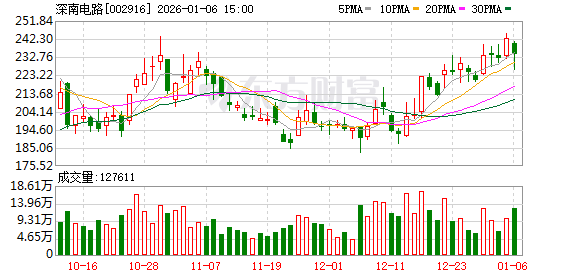 1月7日,深南电路涨5.02%,截至发稿,报246.10元/股,成交9.30亿元,换手率0.58%,总市值1640.85 亿元。 资料显示,深南电路股份有限公司位于广东省深圳市龙岗区坪地街道盐龙大道1639号,成立日期1984年 7月3日,上市日期2017年12月13日,公司主营业务涉及从事印制电路板的研发、生产及销售。主营业务 收入构成为:印制电路板60.01%,封装基板16.64%,电子装联14.14%,其他(补充)5.80%,其他产品 3.40%。 责任编辑:小浪快报 德邦福鑫A(001229)成立日期2015年4月27日,最新规模7799.63万。今年以来收益3.19%,同类排名 3848/8823;近一年收益47.71%,同类排名2274/8083;成立以来收益96.46%。 德邦福鑫A(001229)基金经理为雷涛。 截至发稿,雷涛累计任职时间4年12天,现任基金资产总规模134.9亿元,任职期间最佳基金回报 293.78%, 任职期间最差基金回报-30.61%。 风险提示:市场有风险,投资需谨慎。本文为AI大模型自动发布,任何在本文出现的信息(包括但不 限于个股、评论、预测、图表、指标、理论、任 ...