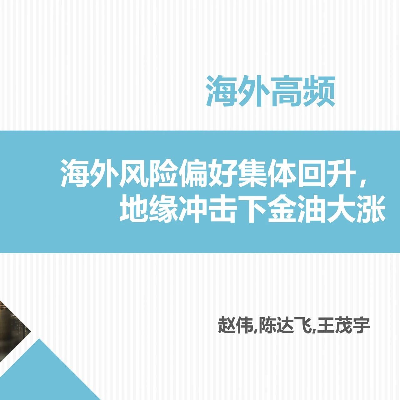 海外高频 | 海外风险偏好集体回升,地缘冲击下金油大涨 (申万宏观·赵伟团队)