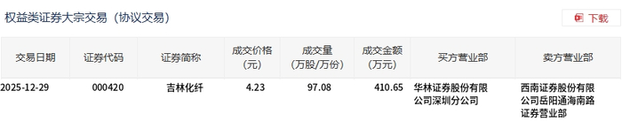 格隆汇12月30日|吉林化纤公告,股东上海方大投资管理有限责任公司于2025年12月29日通过深交所集 中竞价交易方式减持2458.87万股,占公司总股本1%;减持后持股1.46亿股,占公司总股本5.95%。 ...