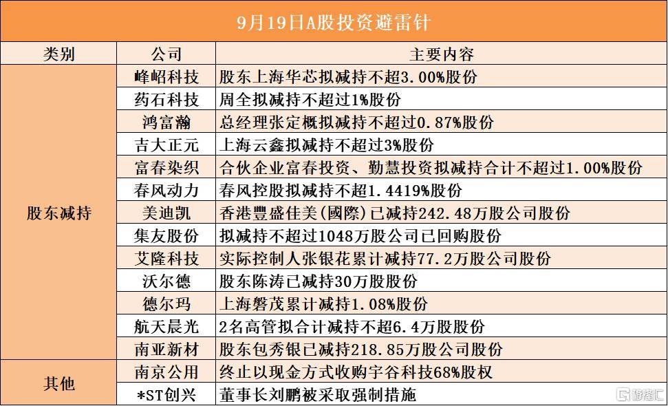 9月19日A股投资避雷针︱南京公用:终止以现金方式收购宇谷科技68%股权;*ST创兴:董事长刘鹏被采取强制措施