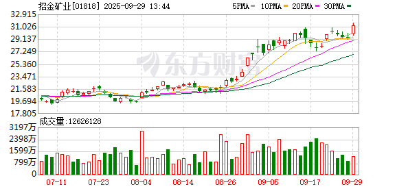 公司股价表现 - 招金黄金9月29日盘中涨停 涨幅达10.02% [2] - 当日成交额超过5亿元人民币 [2] 市场交易情况 - 股票交易表现活跃 成交规模显著 [2]