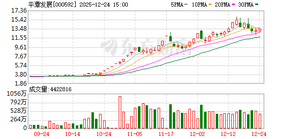 12月22日,平潭发展盘中跌幅达5%,截至9点31分,报12.91元,成交8.39亿元,换手率3.25%。 回顾12月19日,平潭发展(000592.SZ)股价在收盘前的4分钟内闪崩12.5%。一些使用曲面屏手机的股民只能从手机侧面看到那条下跌的"瀑布线"。 一只持续亏损多年的小盘股在2025年三季度出现微利后,随即4个月内暴涨了5倍。 尾盘急坠 投资者论坛信息显示,19日盘后,有投资者询问平潭发展,公司股价严重脱离基本面炒作,多次触发异动和严重异动,为何公司不停牌核查? 平潭发展回应表示:公司股票前期已于2025年11月18日开市起停牌核查,并在核查结束后,于2025年11月21日开市起复牌。二级市场股票价格受诸多因素影 响,公司主营业务未发生重大变化,股价短期内连续上涨,敬请广大投资者注意风险,理性投资。 2013—2015年,平潭发展从最低每股1.71元狂涨至24.46元。 平潭发展2025年下半年再一次平地起飞,股价从2025年8月4日的最低每股2.93元,一路上涨至2025年12月17日的最高16.97元,涨幅为479.18%,接近上涨5 倍。 12月19日,该股在收盘前4分钟,股价从上涨5.02% ...