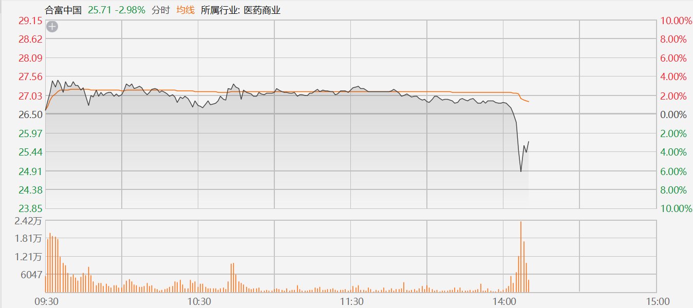 A股高位股午后集体跳水,合富中国闪崩触及跌停