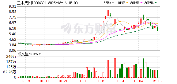 证券日报网讯 12月14日晚间,三木集团发布公告称,公司股票于2025年12月10日、12月11日、12月12 日连续三个交易日收盘价格跌幅偏离值累计为-20.96%,属于股票交易价格异常波动的情形。公司确 认,目前生产经营正常,不存在应披露而未披露的重大信息,控股股东、实际控制人及董监高在异常波 动期间未买卖公司股票。 (编辑 王江浩) ...