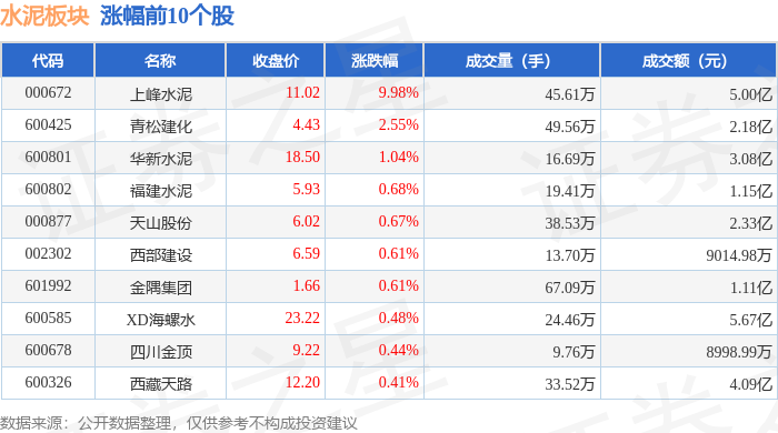 上峰水泥股价涨5.3%,海富通基金旗下1只基金重仓,持有116.62万股浮盈赚取57.14万元