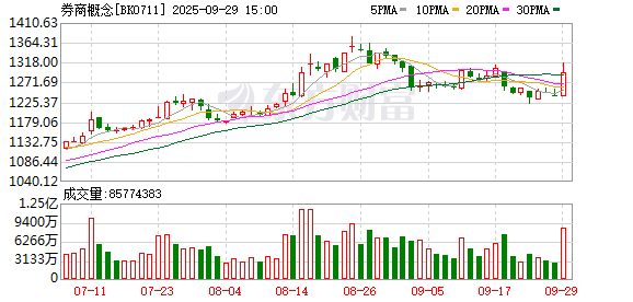 市场表现 - A股三大指数9月29日集体上涨 沪深两市成交额连续13个交易日突破2万亿[2] - 券商概念股集体爆发 广发证券 华泰证券 国盛金控涨停 湘财股份 东方证券 东吴证券等走强[2] 政策支持 - 央行会议明确落实适度宽松货币政策 引导金融机构加大货币信贷投放力度[2] - 央行提出用好证券 基金 保险公司互换便利和股票回购增持再贷款 探索常态化制度安排维护资本市场稳定[2] 行业基本面 - 三季度证券行业交易活跃度和两融规模提升明显 叠加低基数效应 券商三季报业绩同比增速有望进一步扩大[2] - 投行 衍生品和公募业务等业务有望接续改善[2] - 头部券商海外业务崛起和内生增长导向有望驱动ROE扩张[2] 投资机会 - 券商板块估值仍在低位 机构仍有配置空间[2] - 继续看好券商板块战略性配置机会 关注三季报和政策事件催化[2]