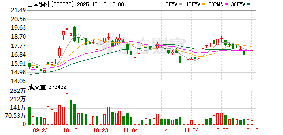 云南铜业所属申万行业为:有色金属-工业金属-铜。所属概念板块包括:有色铜、黄金股、稀缺资源、 融资融券、中盘等。 截至12月10日,云南铜业股东户数19.89万,较上期增加1.99%;人均流通股10075股,较上期减少 1.95%。2025年1月-9月,云南铜业实现营业收入1377.43亿元,同比增长6.73%;归母净利润15.51亿元, 同比增长1.91%。 分红方面,云南铜业A股上市后累计派现40.19亿元。近三年,累计派现19.44亿元。 12月19日,云南铜业盘中上涨2.03%,截至10:30,报17.62元/股,成交2.54亿元,换手率0.73%,总市值 353.04亿元。 资金流向方面,主力资金净流入324.58万元,特大单买入1504.19万元,占比5.91%,卖出1324.47万元, 占比5.21%;大单买入4993.10万元,占比19.63%,卖出4848.24万元,占比19.06%。 云南铜业今年以来股价涨47.45%,近5个交易日跌0.17%,近20日涨10.47%,近60日涨13.60%。 今年以来云南铜业已经1次登上龙虎榜,最近一次登上龙虎榜为10月10日。 资料显示,云南铜业股份有 ...