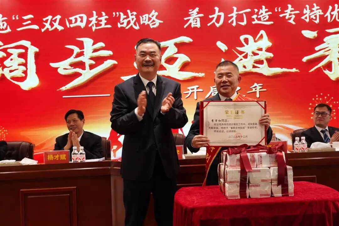 12月28日,总部位于荆门的洋丰集团股份有限公司举行2025年总结表彰大会。会上,新洋丰中磷总 经理李万和等三人获"董事长特别奖",奖金分别达160万元、30万元和30万元。 洋丰集团年度总结表彰大会除总结工作外,关注度最高的就是年终奖发放,包括目标考核责任兑现 奖和单项奖。 当天,洋丰集团股份有限公司共发放奖金2000多万元,涉及300多人。除颁发"董事长特别奖"外, 还为先进单位、优秀管理干部、劳动模范、先进工作者、技改创新奖、合理化建议奖、科技荣誉奖、知 识产权奖、制定标准奖等奖项获得者和考核优秀单位颁发证书和奖金。 今年获"董事长特别奖"的三人分别为新洋丰中磷总经理李万和、新洋丰研究院副院长梁富忠和湖北 丰锂新能源科技公司总经理胡明峰。李万和今年担任新洋丰中磷总经理以来,果断推进实施35项技术改 造,覆盖磷化工从选矿到产品终端的全产业链,获得160万元奖金,同时还被表彰为优秀管理干部。 梁富忠和胡明峰通过技改和数字化改革,大幅降低磷酸铁生产成本,分别获得奖金30万元。 "获得'董事长特别奖'非常高兴,感谢董事长和总部的支持肯定,新洋丰中磷将继续深化改革,为 公司长远发展贡献力量。"李万和激动地说。 洋 ...