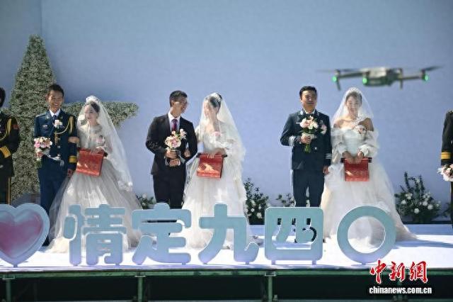 兰州黄河畔迎七夕集体婚礼:“戎装为媒”赴浪漫之约
