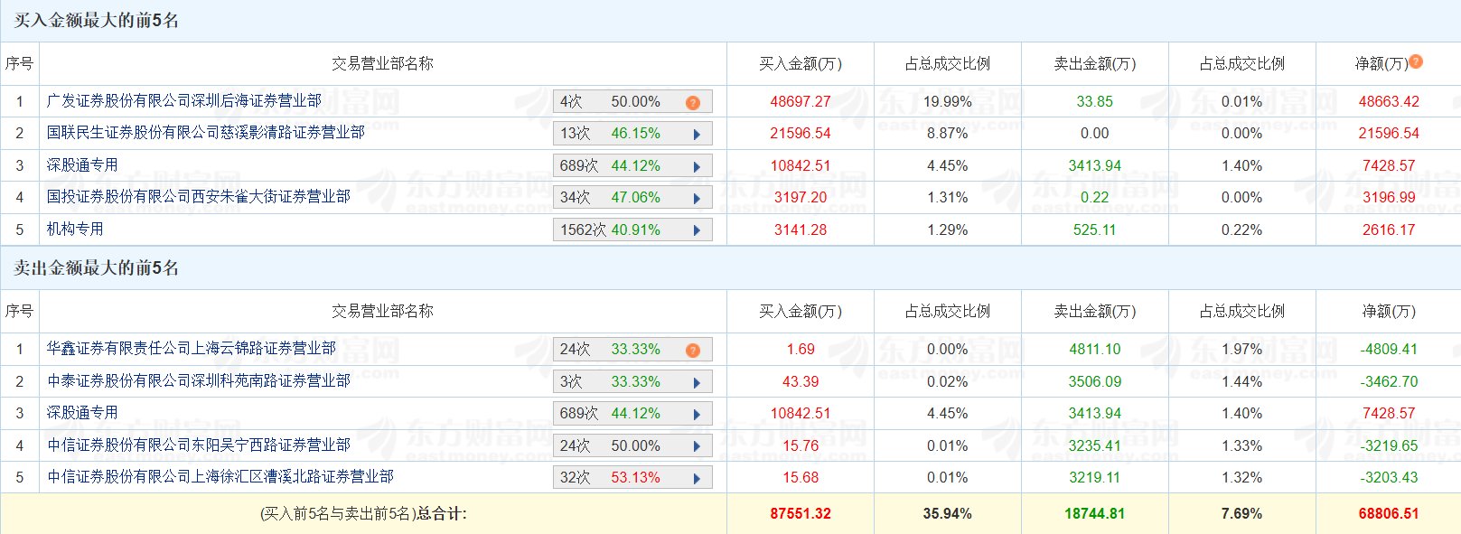 龙虎榜丨山子高科两连板,广发证券深圳后海营业部净买入4.87亿元,深南东路净买入2.16亿元