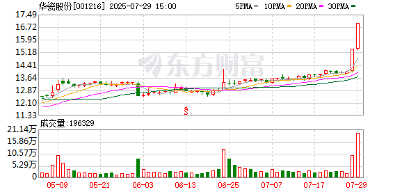 华瓷股份连收3个涨停板