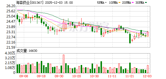 海森药业(001367.SZ):董事、高级管理人员拟合计减持12.43万股