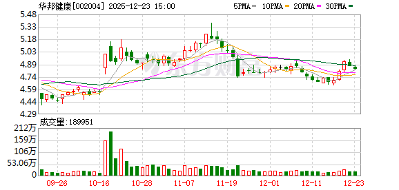 以上内容为证券之星据公开信息整理,由AI算法生成(网信算备310104345710301240019号),不构成 投资建议。 《独立董事工作制度(2025年12月)》 《募集资金使用管理办法(2025年12月)》 《关联交易决策制度(2025年12月)》 《对外担保管理制度(2025年12月)》 《关于非公开发行科技创新可交换公司债券的公告》 《关于增加2025年度日常关联交易预计及预计2026年度日常关联交易的公告》 《关于2026年度开展远期结售汇业务和人民币对外汇期权组合等业务的可行性分析报告》 《关于预计2026年度开展远期结售汇业务和人民币对外汇期权组合等业务的公告》 《关于公司及子公司2026年度向银行等金融机构申请授信额度及担保事项的公告》 《关于召开2026年第一次临时股东会的通知》 《第九届董事会第四次会议决议公告》 最新公告列表 截至2025年12月23日收盘,华邦健康(002004)报收于4.83元,较前一交易日下跌0.62%,最新总市值 为95.63亿元。该股当日开盘4.85元,最高4.88元,最低4.81元,成交额达9191.57万元,换手率为 1.01%。 近日,华邦生命健康股份有 ...