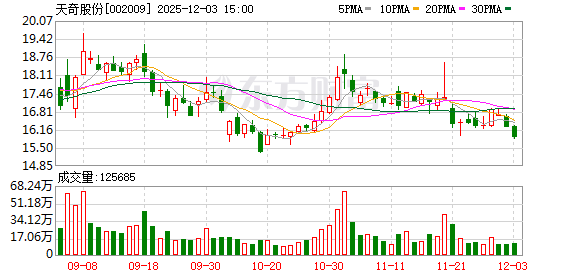 每经AI快讯,天奇股份(SZ 002009,收盘价:16.46元)12月10日晚间发布公告称,公司第九届第十次 董事会临时会议于2025年12月10日以通讯方式召开。会议审议了《关于制定 <董事 高级管理人员持有 公司股份及其变动管理制度="高级管理人员持有公司股份及其变动管理制度"> 的议案》等文件。 每经头条(nbdtoutiao)——白金信用卡权益大缩水:贵宾厅限次、酒店减量⋯⋯银行吐槽没赚头,"羊 毛党"薅了个寂寞 (记者 曾健辉) 2025年1至6月份,天奇股份的营业收入构成为:智能装备占比67.55%,重工装备占比14.54%,锂电池 循环事业部占比11.02%,循环产业占比4.87%,其他业务占比2.02%。 截至发稿,天奇股份市值为66亿元。 ...