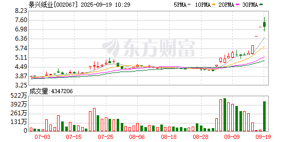 景兴纸业今日跌5.43% 3家机构专用席位净卖出1.41亿元