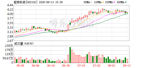 能特科技(002102)8月7日主力资金净流入3692.24万元