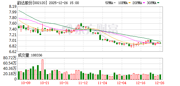 2、公司于 2025 年 12 月 26 日召开的第八届董事会第二十五次会议审议通过 了《关于不向下修正韵达转债转股价格的议案》,公司董事会决定本次不向下修 正"韵达转债"的转股价格,且在未来 6 个月内,如再次触发"韵达转债"转股 价格向下修正条款,亦不提出向下修正方案。 一、可转换公司债券基本情况 | 证券代码:002120 | 证券简称:韵达股份 | 公告编号:2025-090 | | --- | --- | --- | | 债券代码:127085 | 债券简称:韵达转债 | | (一)可转债发行情况 韵达控股集团股份有限公司 关于不向下修正韵达转债转股价格的公告 本公司及董事会全体成员保证信息披露的内容真实、准确、完整,没有虚 假记载、误导性陈述或重大遗漏。 特别提示: 1、截至 2025 年 12 月 26 日,韵达控股集团股份有限公司(以下简称"公司") 股票已经出现在任意连续三十个交易日中至少十五个交易日的收盘价低于当期 转股价格 85.00%的情形,触发"韵达转债"转股价格向下修正条件。 经中国证券监督管理委员会《关于核准韵达控股股份有限公司公开发行可转 换公司债券的批复》(证监许可[2022 ...