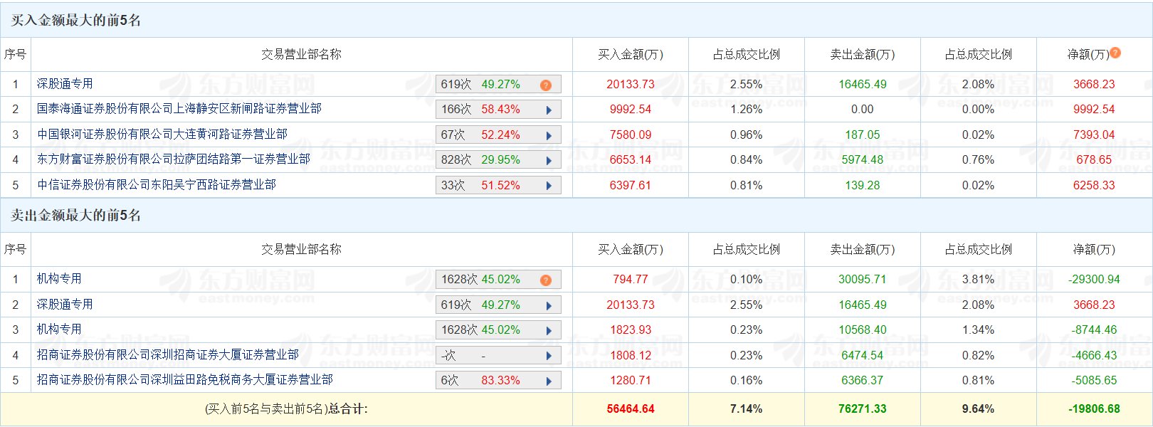 股价表现 - 公司股价涨停 换手率达26.39% 成交额79.08亿元 [1] 资金流向 - 深股通买入2.01亿元 卖出1.66亿元 实现净买入3668万元 [1] - 两家机构买入2619万元 卖出4.07亿元 净卖出3.8亿元 [1] - 龙虎榜席位合计买入5.65亿元 卖出7.63亿元 整体净卖出1.98亿元 [1]