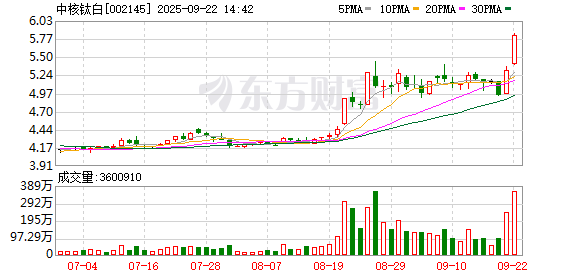 成交表现 - 成交额达18.99亿元 创2022年7月22日以来新高 [2] - 较上一交易日成交额12.54亿元增长51.4% [2] - 换手率为8.90% [2] 股价变动 - 最新股价上涨8.10% [2] 公司基本信息 - 公司全称为中核华原钛白股份有限公司 [2] - 成立时间为2001年2月23日 [2] - 注册资本为38.07亿元人民币 [2]