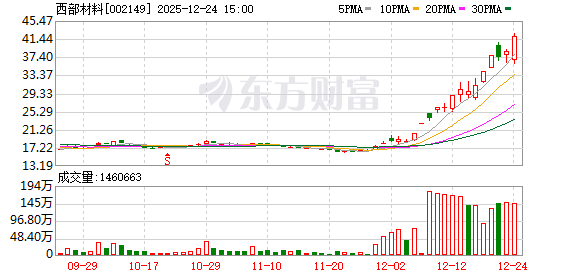 西部材料今日上涨8.47%,全天换手率29.92%,成交额57.79亿元,振幅18.94%。龙虎榜数据显示,机构 净买入1.86亿元,深股通净卖出1.28亿元,营业部席位合计净卖出2865.03万元。 深交所公开信息显示,当日该股因日振幅值达18.94%上榜,机构专用席位净买入1.86亿元,深股通净卖 出1.28亿元。 证券时报·数据宝统计显示,上榜的前五大买卖营业部合计成交10.96亿元,其中,买入成交额为5.62亿 元,卖出成交额为5.33亿元,合计净买入2869.59万元。 具体来看,今日上榜的营业部中,共有3家机构专用席位现身,即买一、买二、买三、卖三,合计买入 金额3.16亿元,卖出金额1.30亿元,合计净买入1.86亿元,深股通为第一大卖出营业部,买入金额为 2007.23万元,卖出金额为1.48亿元,合计净卖出1.28亿元。 资金流向方面,今日该股主力资金净流入1.38亿元,其中,特大单净流入1.50亿元,大单资金净流出 1188.86万元。近5日主力资金净流入3.23亿元。 融资融券数据显示,该股最新(12月23日)两融余额为11.65亿元,其中,融资余额为11.61亿元,融券 余额为340. ...