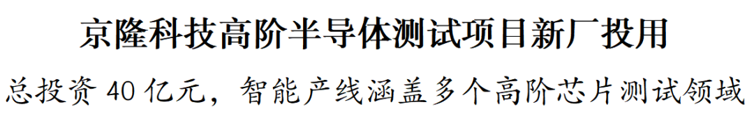通富微电董事长兼京隆科技副董事长石磊;市委常委、苏州工业园区党工委书记沈觅,市政府秘书长徐本,市有关部门主要负责同志参加。 来源:苏报融媒记者朱琦/文 智能产线。苏报融媒记者 濮建明/摄 吴庆文在致辞时表示,近年来,苏州大力培育集成电路领域新质生产力,已集聚集成电路产业链重点企业超380家,形成了从设计、制造、封测到设备材 料的完整产业布局。通富微电是苏州并肩前行的好伙伴,此次投资建设京隆科技高阶半导体新项目,必将为苏州集成电路产业发展跃升注入新的强劲动 能。期待企业家朋友把更多先进技术、高端项目、优质资源带到苏州。苏州将坚持长期主义,一如既往提供细致周到服务,持续营造市场化、法治化、国 际化一流营商环境,陪伴企业成长,共享发展机遇、共创美好未来。 京隆科技(苏州)有限公司扎根苏州工业园区20余年,已发展成为国内最大的高阶芯片专业测试厂商,构建了全流程芯片封测服务体系。2025年,园区产 业基金联合全球封测龙头企业通富微电,完成京隆科技股权重组。此次投用的新工厂位于独墅湖科教创新区(东区),总投资40亿元,占地68亩,其搭载 的智能产线涵盖人工智能、车规级、工业级等高阶芯片测试领域。预计达产后,将进一步扩大企 ...