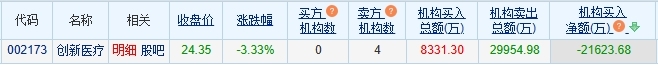 龙虎榜丨创新医疗跌3.33%,四机构净卖出2.16亿元