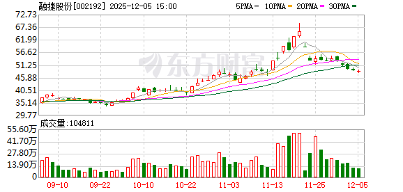 股价表现与交易数据 - 11月26日盘中股价报55.04元/股,上涨2.06%,总市值142.91亿元,成交额11.64亿元,换手率8.31% [1] - 主力资金净流出7069.14万元,特大单净卖出6034.45万元,大单净卖出1000万元 [1] - 今年以来股价累计上涨73.44%,近60日上涨54.52%,近5个交易日下跌12.99% [2] - 今年以来两次登上龙虎榜,最近一次11月19日龙虎榜净买入2.24亿元,买入总计7.52亿元,占总成交额23.69% [2] 公司基本面 - 公司主营业务为新能源锂电材料产业链,包括锂矿采选、锂盐加工及冶炼、锂电设备制造等 [2] - 主营业务收入构成为:锂精矿86.31%,锂电池设备12.76%,锂盐0.66%,其他0.28% [2] - 2025年1-9月实现营业收入5.10亿元,同比增长26.21%,归母净利润1.44亿元,同比减少21.22% [3] - A股上市后累计派现4.95亿元,近三年累计派现3.75亿元 [4] 股东与机构持仓 - 截至10月31日股东户数5.20万,较上期增加3.15%,人均流通股4983股,较上期减少3.05% [3] - 香港中央结算有限公司为第二大流通股东,持股525.46万股,较上期增加169.42万股 [4] - 多家ETF基金位列十大流通股东,其中广发中证1000ETF为新进股东,持股87.58万股 [4] 行业与板块属性 - 公司所属申万行业为有色金属-能源金属-锂 [2] - 所属概念板块包括龙虎榜热门、锂电池、磷酸铁锂、小金属、稀缺资源等 [2]