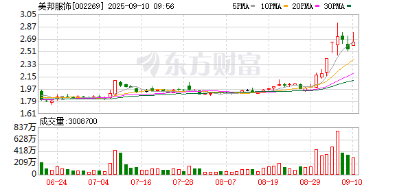 美邦服饰今日涨3.02%,2家机构专用席位净买入1.08亿元
