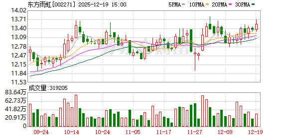 东方雨虹所属申万行业为:建筑材料-装修建材-防水材料。所属概念板块包括:海工装备、染料涂料、 高派息、房屋检测、新材料等。 截至12月10日,东方雨虹股东户数14.69万,较上期减少3.31%;人均流通股13033股,较上期增加 3.43%。2025年1月-9月,东方雨虹实现营业收入206.01亿元,同比减少5.06%;归母净利润8.10亿元,同 比减少36.61%。 分红方面,东方雨虹A股上市后累计派现107.14亿元。近三年,累计派现76.03亿元。 资金流向方面,主力资金净流入1573.36万元,特大单买入1577.69万元,占比9.31%,卖出606.38万元, 占比3.58%;大单买入3950.43万元,占比23.31%,卖出3348.37万元,占比19.76%。 东方雨虹今年以来股价涨22.37%,近5个交易日涨3.26%,近20日涨5.99%,近60日涨8.10%。 资料显示,北京东方雨虹防水技术股份有限公司位于北京市亦庄经济技术开发区科创九街19号院,成立 日期1998年3月30日,上市日期2008年9月10日,公司主营业务涉及从事建筑防水材料的研发、生产、销 售和防水工程施工业务。主营业务收 ...