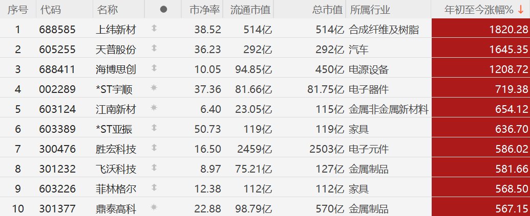 2025年A股十大牛股:上纬新材暴涨超18倍,天普股份、海博思创均涨超1200%